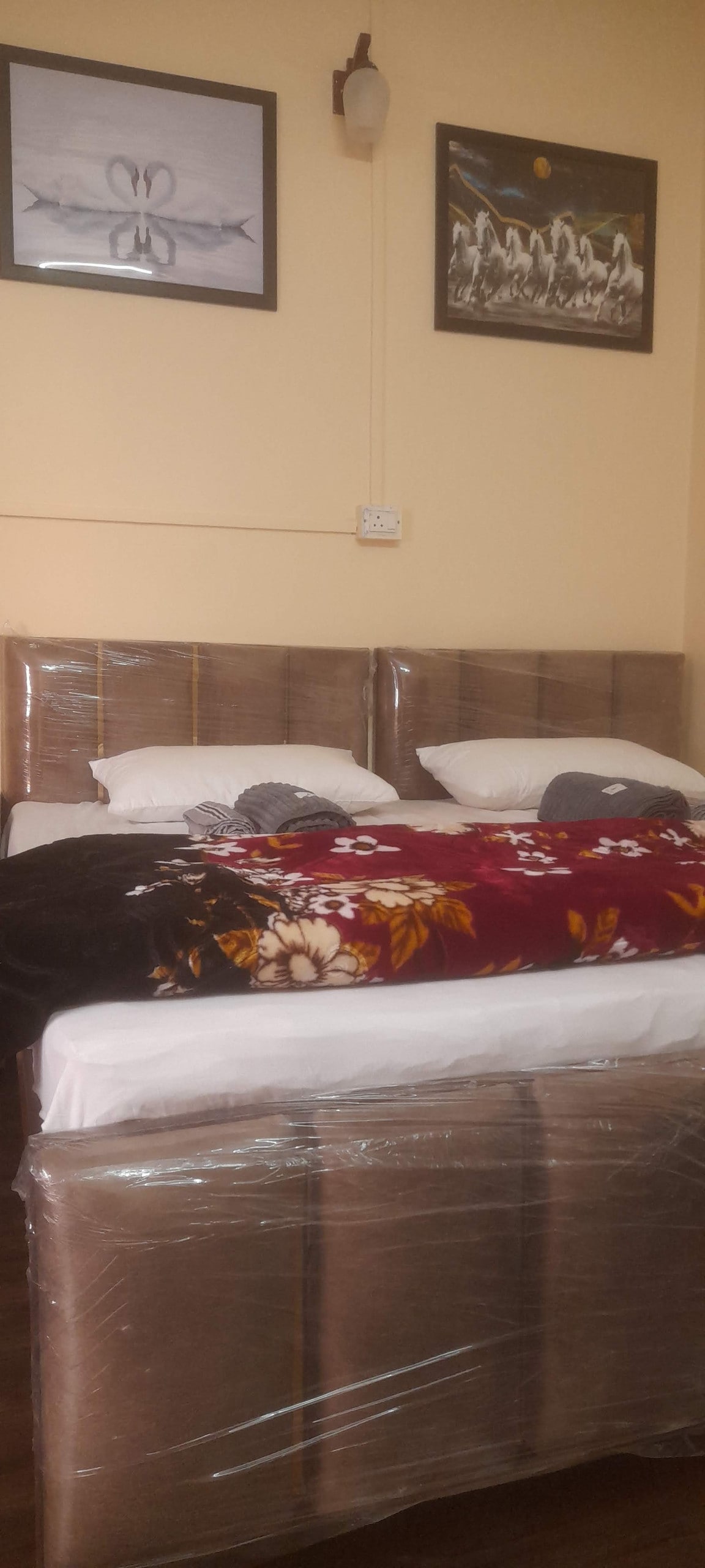 Double bed furnished room set In the heart of city