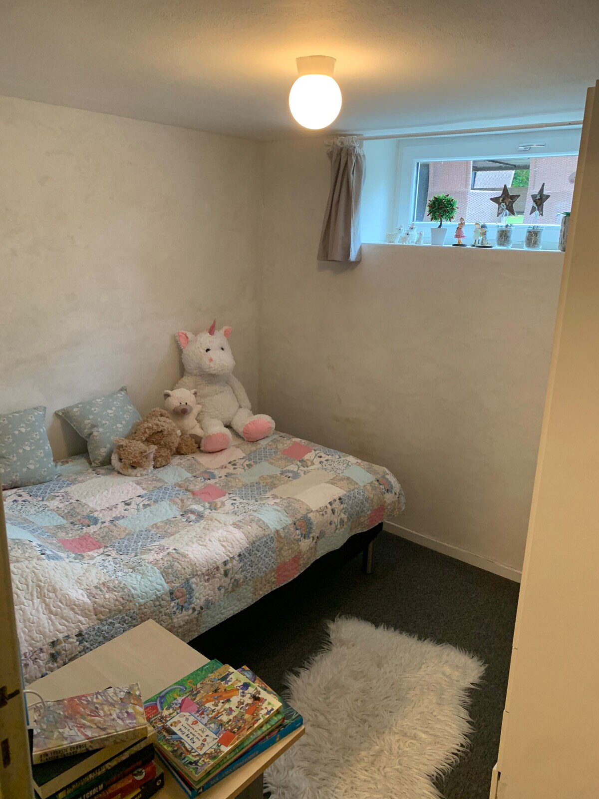 We offer accommodation in our new guest house. The guest house is best suited for a couple, as well as a couple plus a child. It is possible to be a couple plus a child and a baby. The guest house has a private entrance and is equipped with a full kitchen and a bathroom. The kitchen, living room and sleeping area are a large room, but the sleeping area is separated by a half wall. There is a large garden with a child-friendly playground. We live 150 meters from Ansager River