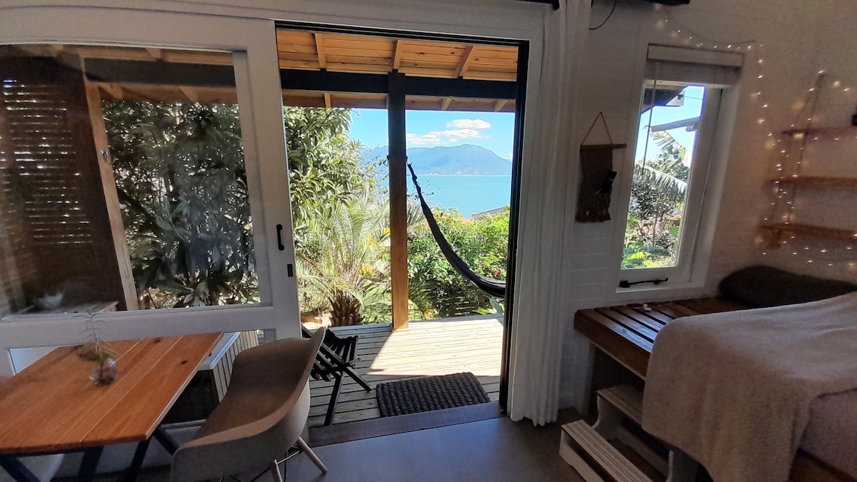 SIMPLICITY, coziness and quiet. Doors, windows and a balcony with a soaking tub, hammock and sun lounger, facing the sea and mountains. In Praia do Garcia, a quiet, simple, little-known residential area of Floripa, with a small and bucolic sheltered beach - between Praia da Tapera, a traditional fishing community and the gastronomic route of Ribeirão da Ilha. Distances by car (recommended): 11 min to the airport 10 min to Ribeirão 22 min Downtown 20 min to Campeche Beach