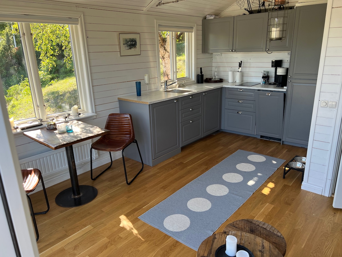 Welcome to our charming 33 sqm guest house with a glimpse of the sea, surrounded by nature and with a bathrobe distance to the sea. Relax on the large terrace, enjoy walks along the water, swim from the jetty or the shallow beach. The cottage is newly renovated, fully equipped and bedded and ready upon arrival. Sauna and hot tub with sea view are available at an additional cost. Bicycles are available to borrow and the restaurant Skeppskatten is close by. 160 bed + extra bed for children.