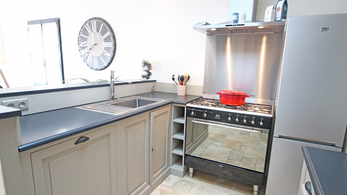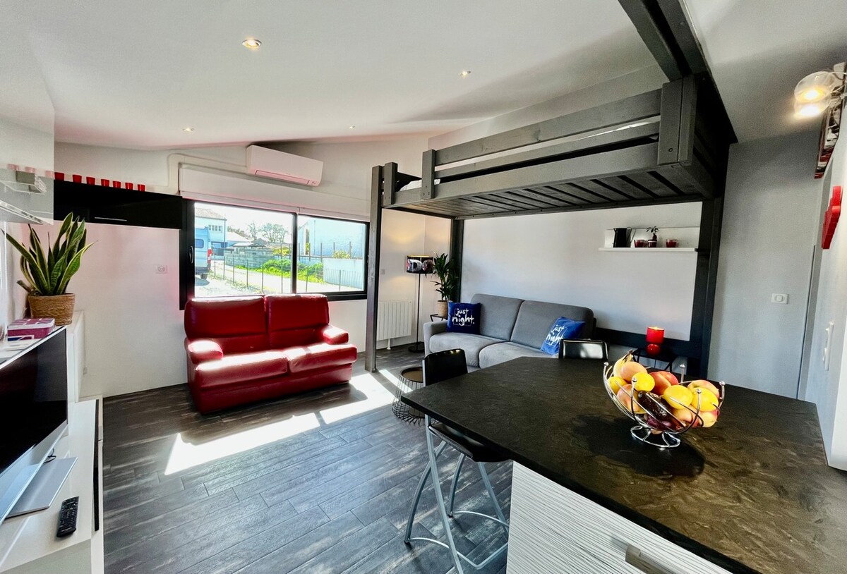 Single-story apartment with its beautiful south-facing terrace, partially shaded where it's good to rest. A real haven of peace, the living room with soft harmonies, equipped kitchen, living room with sofa bed 140 cm thick mattress 17 cm. The amenities are not left out for your comfort. The large master bedroom has a 160 cm queen size bed, while the small bedroom has a 90 cm single bed. And relaxation in the flowered patio-garden of the house /Private parking/ 1 vehicle.