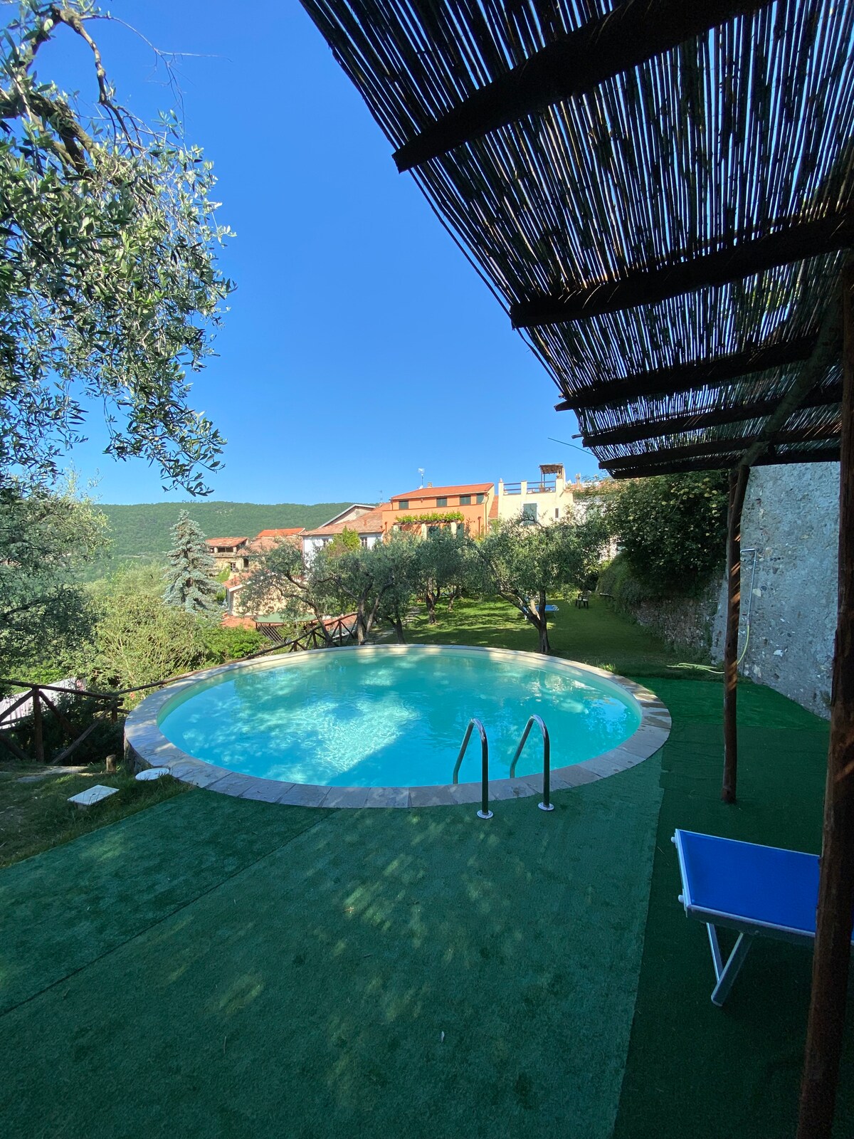 Apartment in the historic center, newly restored with exposed stone, overlooks a centuries-old olive grove immersed in the green valley. Consisting of two bedrooms, a bathroom, a large living room with old wooden beams, a kitchen and a long south-facing terrace. We have also decided to improve our services by adding a swimming pool area accessible exclusively to guests of the vacation home.