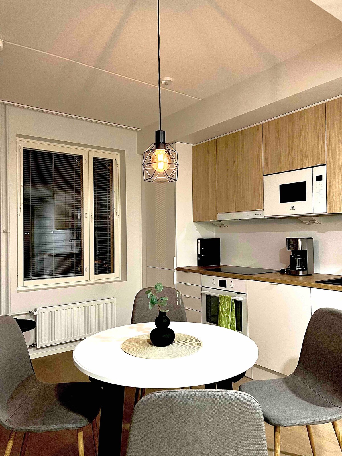 Fully equipped & peaceful town home ideal for longer stays – both business and pleasure. A perfect location for exploring the city. • 41 m² stylish and unique two-room apartment, with fully equipped kitchen • Both central and peaceful location • Free parking + fast WiFi ⭐⭐⭐⭐⭐"A comfortable, seamless stay. Beautiful and functional apartment in a great location!" 》3 min Kuopio Market Place (+city bikes, buses, taxis) 》Supermarket 3 min 》Kuopio Music Center 2 min 》Port of Kuopio 10 min