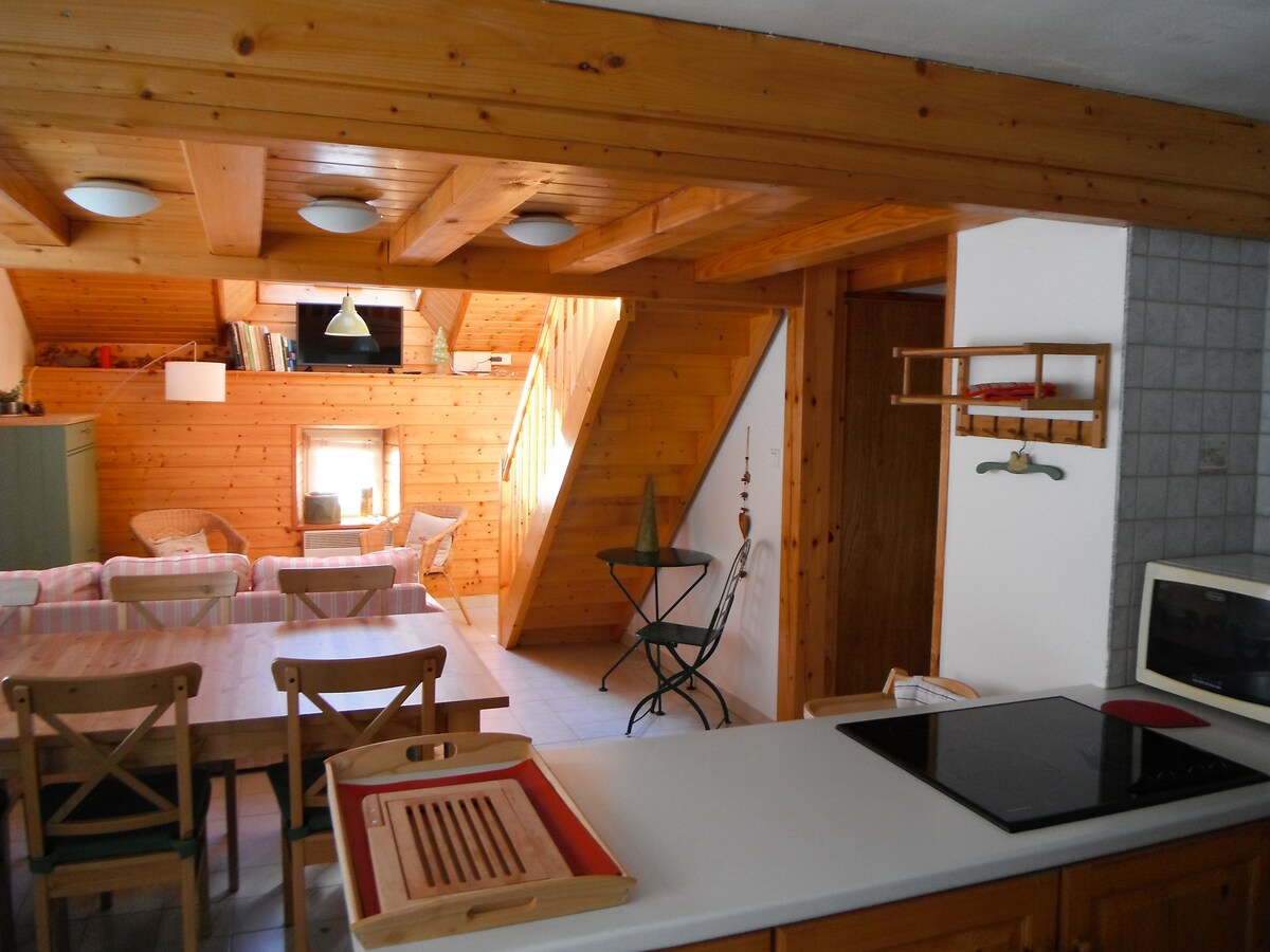 A real pearl nestled in a green setting, the attic above will seduce you with its authentic and discreet luxury. Fully independent chalet apartment for 4 people, fully equipped Small plot adjacent to the private apartment Large with outdoor seating Finnish sauna accessible all year round on the terrace Two bedrooms with two bathrooms A single bed in the mezzanine as an extra