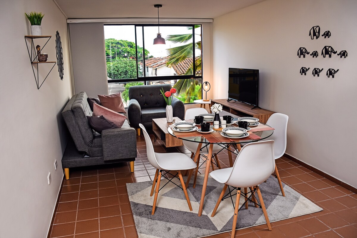 Welcome to your home away from home! This apartment is like a warm embrace in the middle of the tranquility of Ginebra, named a magical village of the Valley. This property with its modern and cozy decoration will make you feel at home. Every corner has been designed for your comfort and enjoyment. From this apartment you will be just 30 minutes from the airport, an hour from Cali, a few meters from supermarkets, the main park and a wide variety of country restaurants.