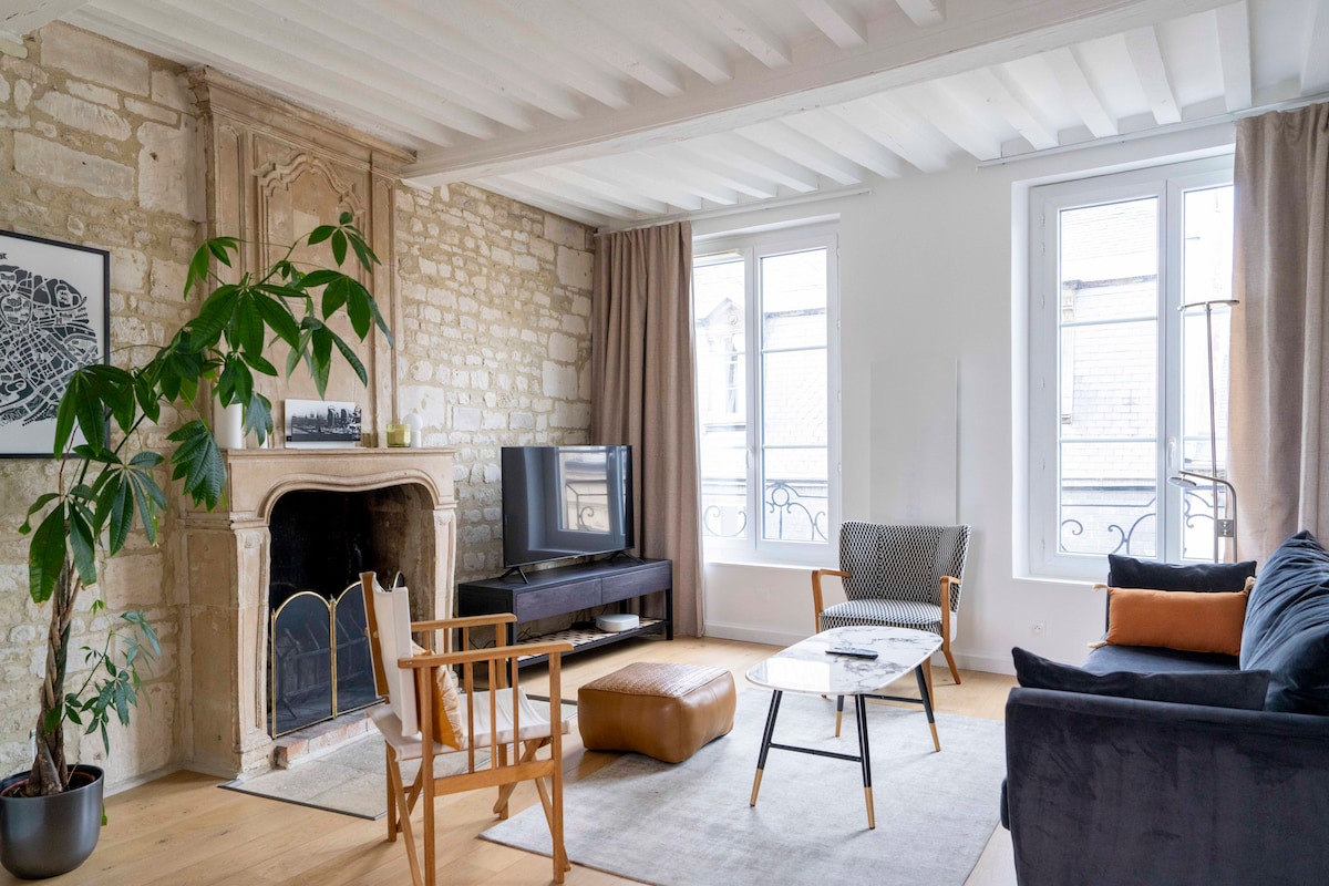 Welcome to Caen 🤗 Our apartment (63 m2), where stone meets modern design, offers breathtaking views of the castle and Saint Pierre Church 🏰 Ideally located on the edge of the pedestrian street, you're within walking distance of the medieval VAUGUEUX district. The botanical gardens and shops are at the foot of the building 🌳 Forget the car 🅿️ : The city center and all the iconic sites are within walking distance. Another key to combining history, exploration and pure relaxation.