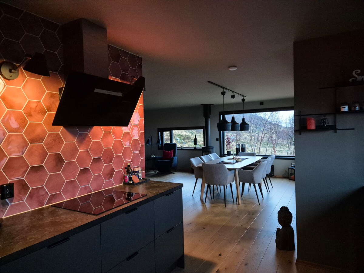 You can not get more central in Lofoten. In this fantastic cabin you live luxuriously and can enjoy the spectacular views in all directions. Situated close to Buksnesfjorden, which goes into Leknes city, which again is only 15 minutes away by car and has all the shops you need, as well as restaurants and cafes. At Mortsund, a few stone's throw away, you will also find a wonderfully nice restaurant and an experience center.