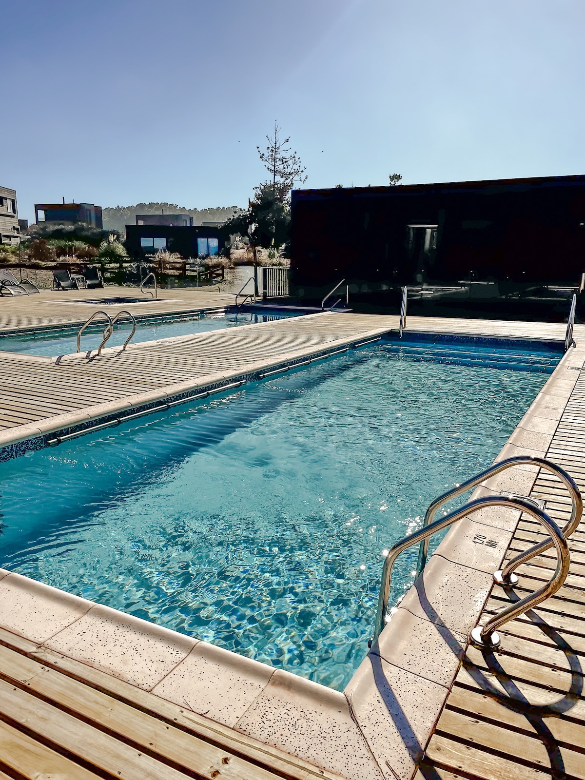 Relax in this unique and quiet beachfront getaway, with your feet in the sand of Punta de Lobos. Luxury cabin with a double bed and a bunk bed for a child. Unlimited use of the hot tub, except on rainy days. Fully equipped. STARLINK Wi-Fi. Double and single wooden chairs, digital kitchen, cutlery, large bathroom, air conditioning, refrigerator, electric oven, electric grill, parking, large terraces. Terrace table. 25 sq. meter cabin.