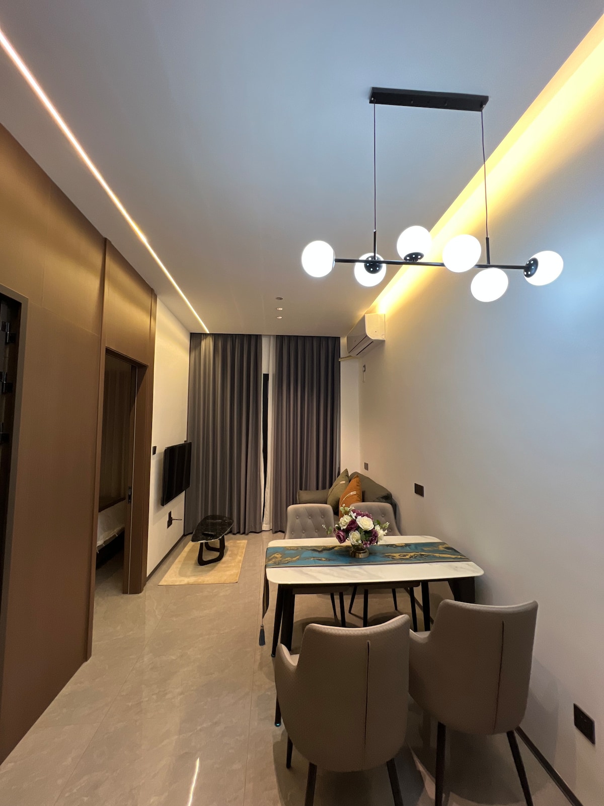 A modern one-bedroom apartment, 40m², located right in the heart of Vientiane. The room is airy, featuring a private balcony, a king bed (1.8m), air conditioning, TV, Wi-Fi, and a quiet workspace. You can comfortably cook with the kitchen, which comes fully equipped with basic cooking utensils and a refrigerator. Each apartment includes daily housekeeping service and the private bathroom. This is an ideal choice for business travelers, tourists, or long-term stays.