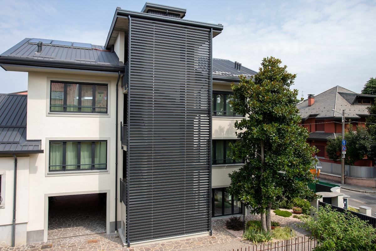 palazzo mazzini was built in 2024, located near Milan, listed in energy class A4, with almost zero energy impact. Entirely dedicated to accommodation, it is divided into one- and two-room flats, on several floors, accessible by lift. The building has a large open-air communal area consisting of a portico, garden and courtyard. Communal laundry and ironing facilities on the ground floor, open daily from 08.00 to 21.00.