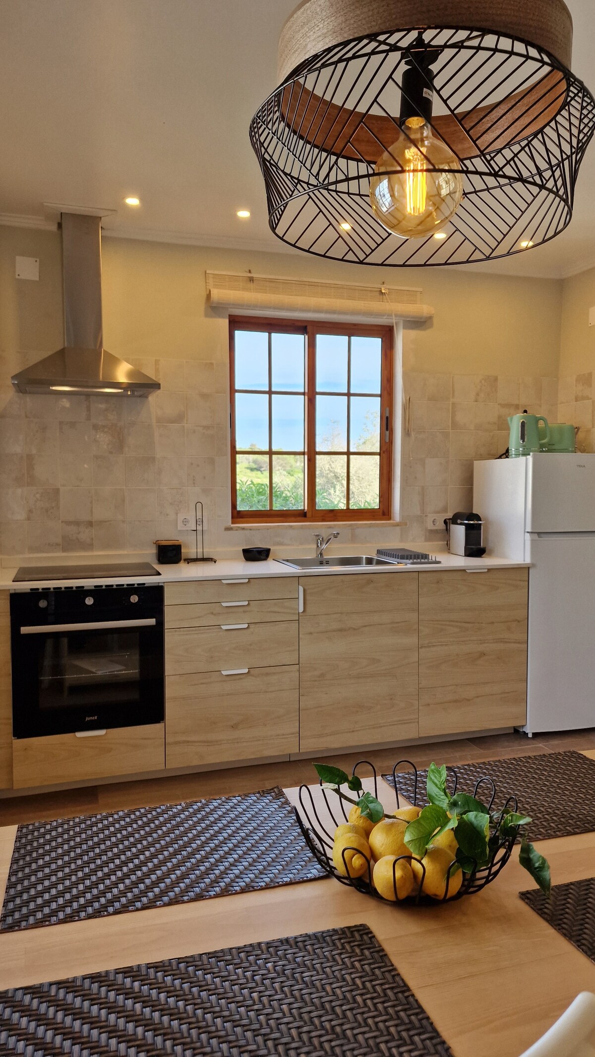 Our vacation home CASA FEE has a bathroom with shower/toilet, a fully equipped kitchen (dishwasher available), flat-screen TV with DVD player, double bed (1.60 m) and a single bed (1 m x 2 m) on a small gallery. Another, narrower bed (0.8 m x 2 m) would be available for a child. Our cottage is very quietly located on the sunny edge of the forest outside the village of Pedralva (within walking distance there is a very delicious restaurant, a pizzeria, and a café with evening bar service).