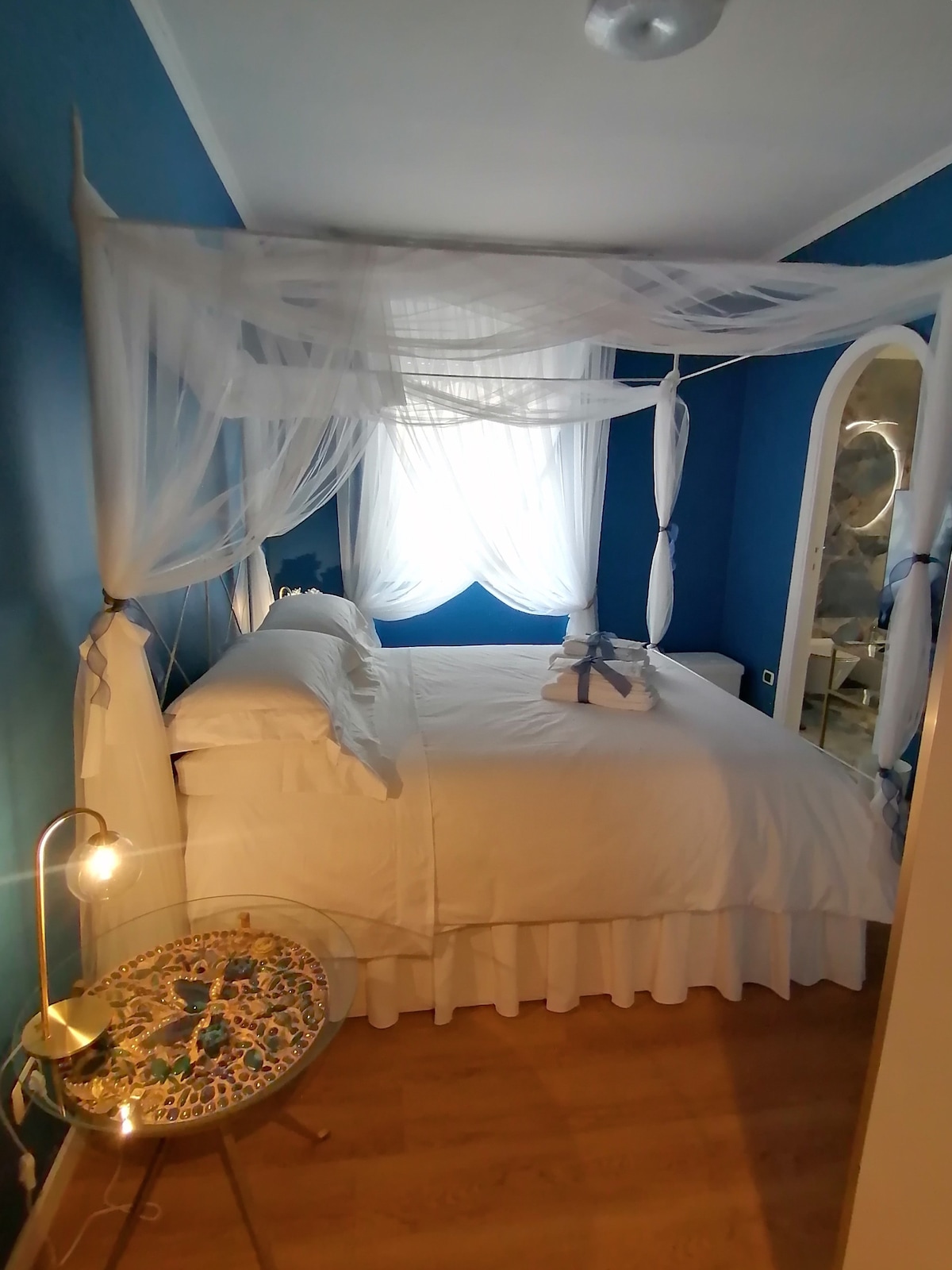 L'appartamento si trova all'interno di un palazzo storico del 1400, è composto da un ingresso, un salone molto grande con comodo divano letto per due persone ed una comoda poltrona letto per una persona, una camera da letto con letto matrimoniale, possibilità di aggiungere un lettino per bambini piccoli, un'ampia cucina con caminetto, un bagno con doccia. Tutti gli ambienti hanno soffitti alti a cassettoni in legno e ampie finestre.