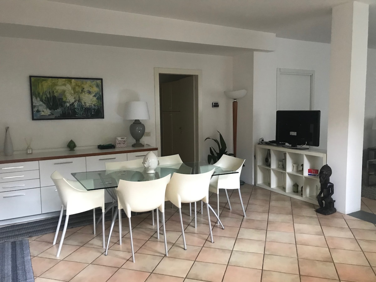 Entire accommodation with outdoor space for exclusive use, the apartment consists of a large open space that includes a kitchen complete with appliances and utensils, dining area and living room with TV access to NETFLIX and WI-FI, large bathroom with shower and bathtub and two double bedrooms. The apartment provides bicycles for guests. Located in a strategic area for travelers and just 20 minutes from Milan, 30 minutes from Como and Lake Maggiore.