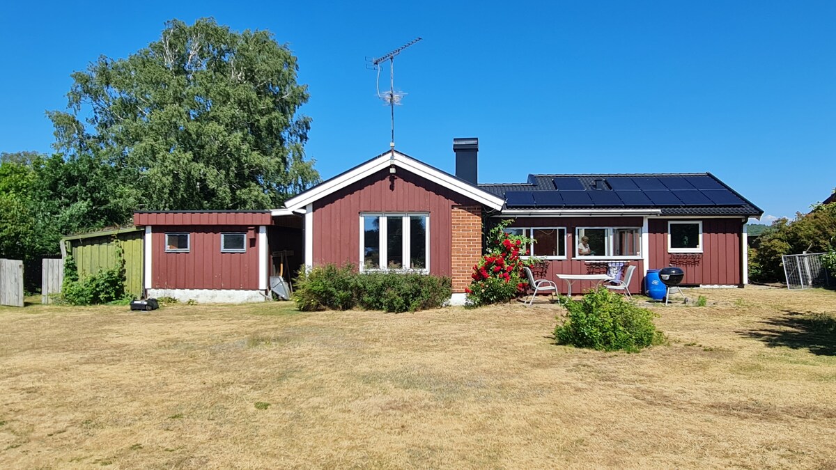 Here you live secluded, quiet and beautiful on the coast outside Halmstad. Hike, bike, eat well, play golf or just relax by the fireplace! Ringenäs golf course, Hallandsleden and Prins Bertils Stig around the corner. 1500 meters to Ringenäs and Frösakulls wonderful sandy beach and 4.5 km to Tylösand. New kitchen and bathroom, fireplace, garden and large terrace with barbecue, lounge furniture and sun loungers. Bicycles are available to borrow. 15-minute drive to Stora Torg in Halmstad. Cleaning, sheets & towels are included.