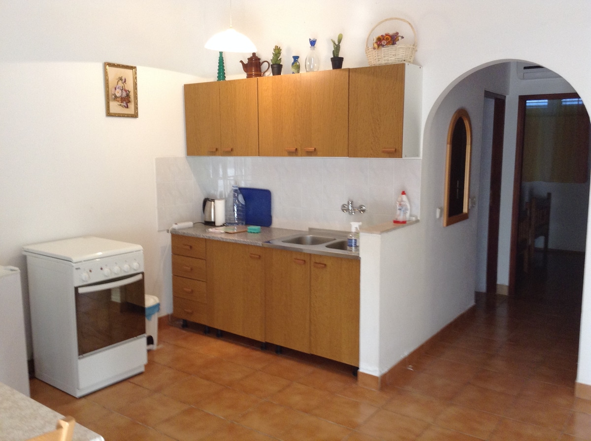 Studio apartment with a comfortable double bed. On the ground floor of the family house so it is always very comfortable to stay in the season and has a small terrace. Possibility to use all the contents of the house and secured parking.