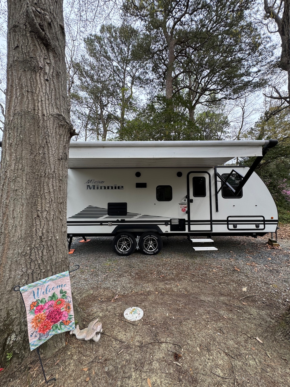 Discover the gorgeous campground called holiday travel park 2 miles from Virginia Beach ocean front with free beach parking, no more hotels why not rent this beachy camper that is equipped with everything for a perfect vacation, with 4 swimming pools on the property, and free beach parking at the beach you will not be disappointed, you book the site and we set it up for you. everything from towels to cookware is all included!!