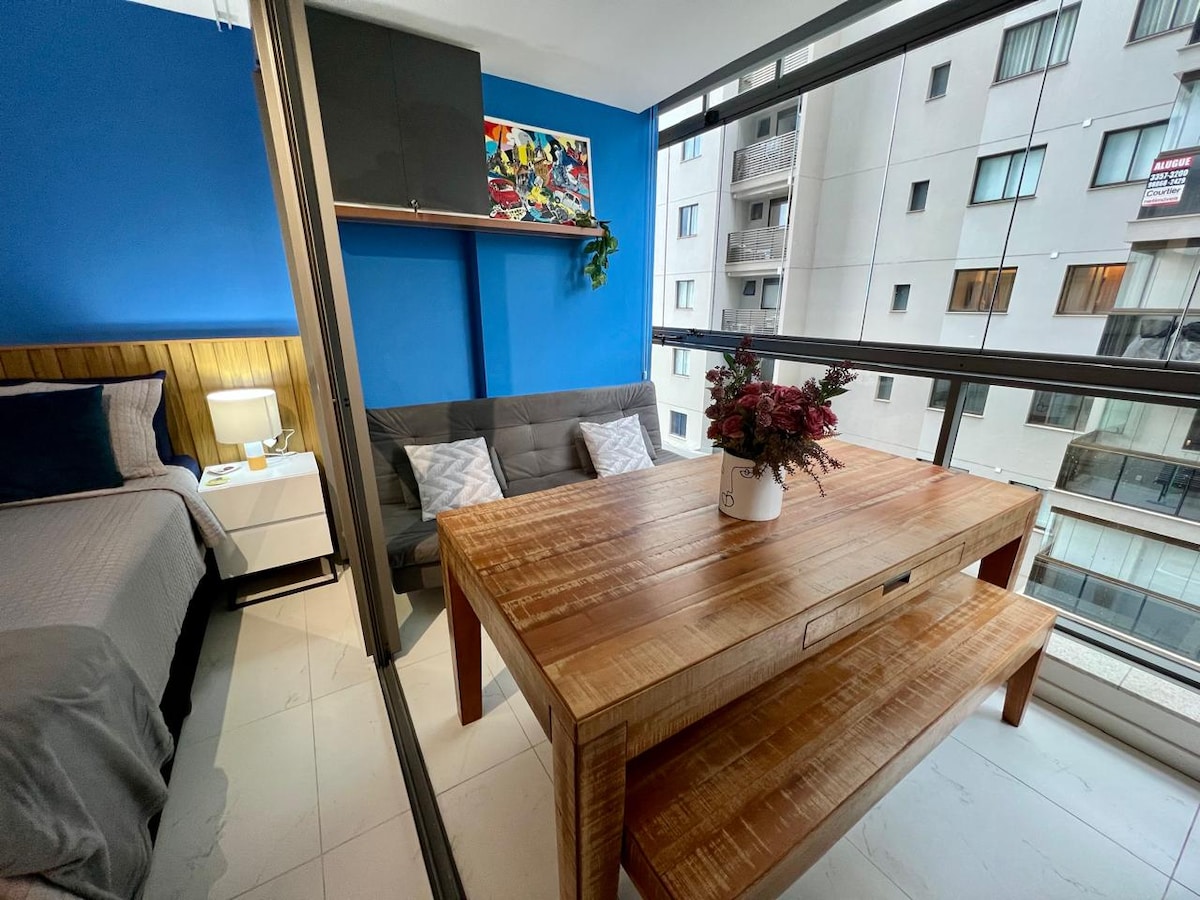 Stay in this beautiful private loft that has all the comforts you need for your leisure or business trip in Vitória Located in front of Camburi Beach, it has easy access to Vitória airport (3 minutes) Offering greater security, you will have 24-hour reception at your disposal and have access to the club with children's and adult pools, a game room, bar and snack bar and several courts. ATTENTION THE LOFT ACCOMMODATES 2 ADULTS IN THE KING-SIZE BED + 2 CHILDREN ON THE SOFA BED. WE HAVE A CRIB AVAILABLE! =)