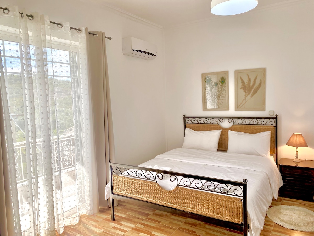 Fully equipped rooms just 5' far from the beach , shops and restaurants . Private kitchen,bathroom and big balcony. Has amazing sea view but also mountain. Located in a peaceful neighborhood in the center of the city and at the same time far from the noise of the car. It's an ideal place for couples and families. The access to the apartment is through stairs as there are only very small streets around. It's a ideal place for relaxing holiday!!!