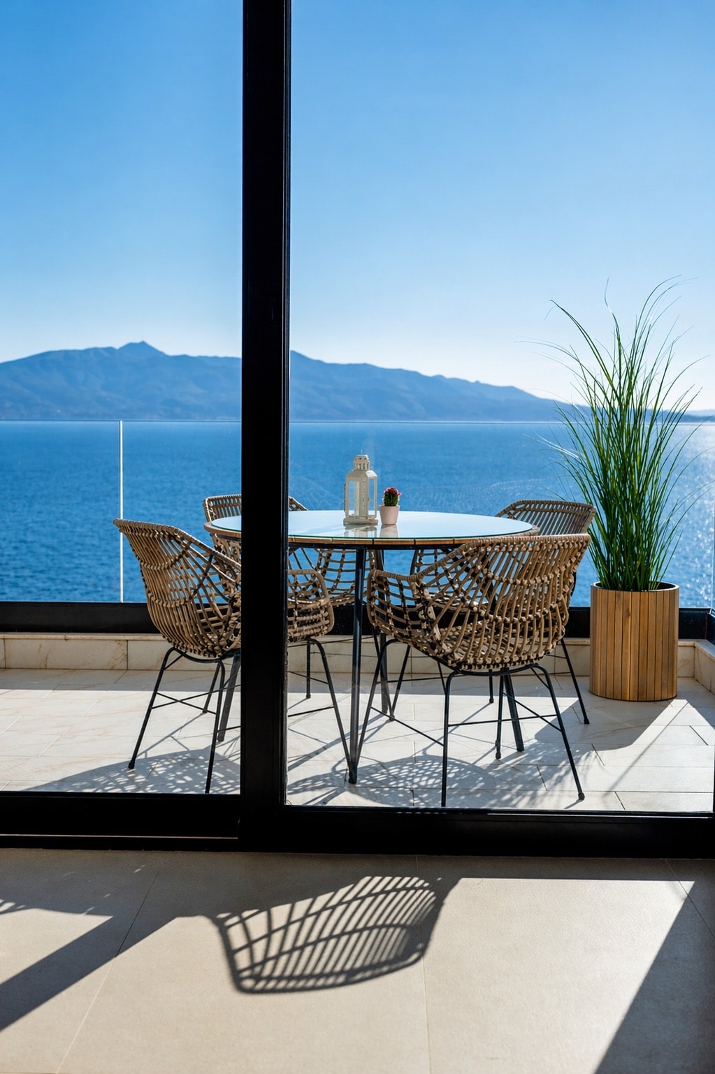 Experience a world of wonder as you immerse in a dreamy coastal getaway offering mornings and sunsets, with a private beach 1-min away downstairs overlooking the Ionian Sea. Our stunning apartment at Bougainville Bay offers spacious and bright interiors adorned with high ceilings showcasing breathtaking sea views. Designed by the architect of our family, our mom, the apartment beautifully blends with the picturesque surroundings of bougainvillea flowers and olive groves of Sarandë.