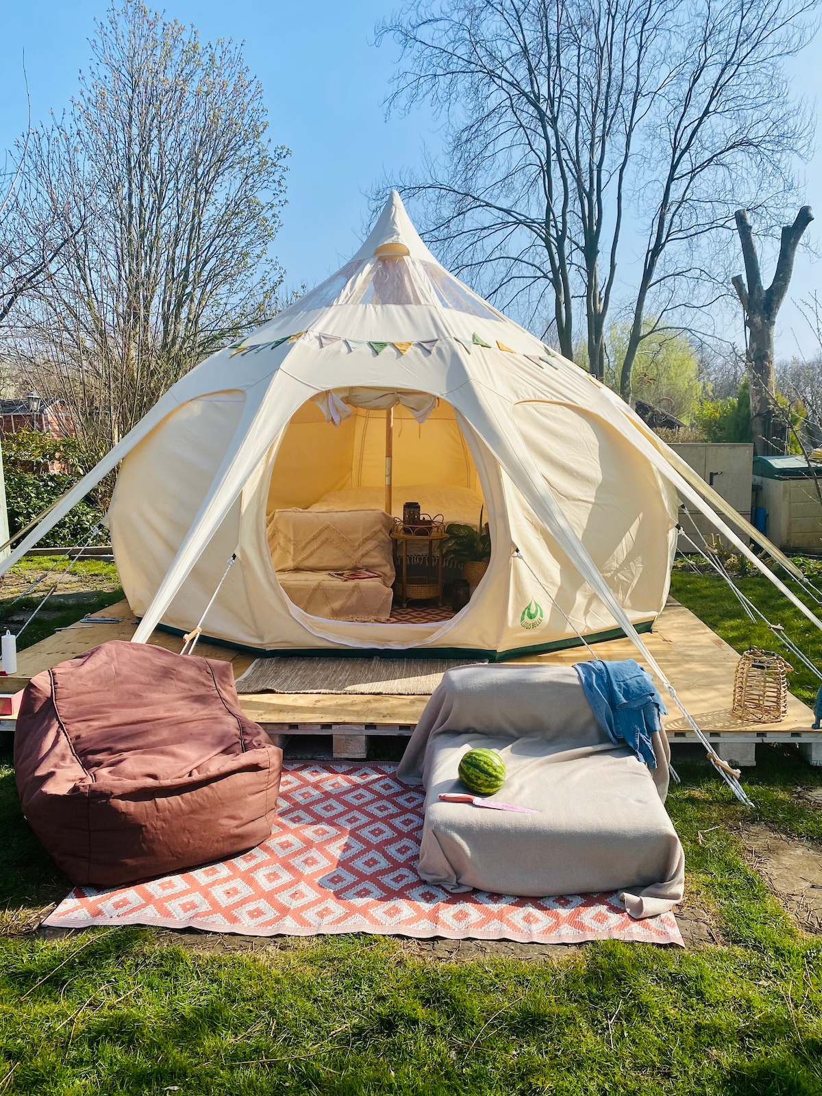 You'll never want to leave this charming tent. The tent is fully furnished, a full kitchen and a "big green egg" to prepare the most delicious meals. If you don't feel like cooking at the end of your day, I'd be happy to do it for you! I also want to make breakfast for you while you enjoy the morning sun and the chirping of the birds. There is a shower and toilet in the farmhouse 20 steps away for your own use.