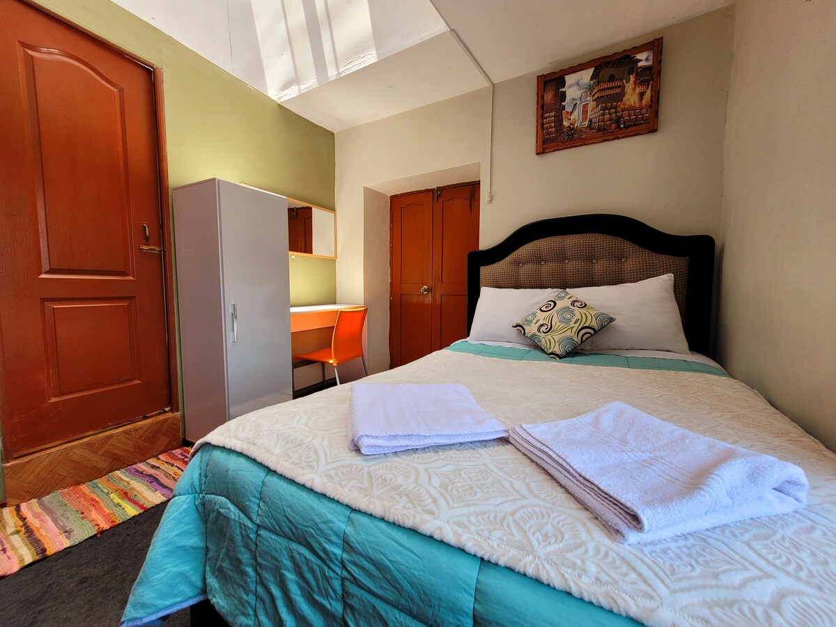 Experience the magic of Cusco from a spacious and cozy room located in the heart of the Historic Center, just 5 blocks from the Plaza de Armas and 1 minute from direct transport to Ollantaytambo station, the gateway to Machu Picchu. 🚿 Private bathroom 📶 WiFi to keep you connected 📺 45” Smart TV with Netflix, ideal for relaxing 💫 Here you will find comfort, practicality and that special touch that will make your stay in Cusco unforgettable.
