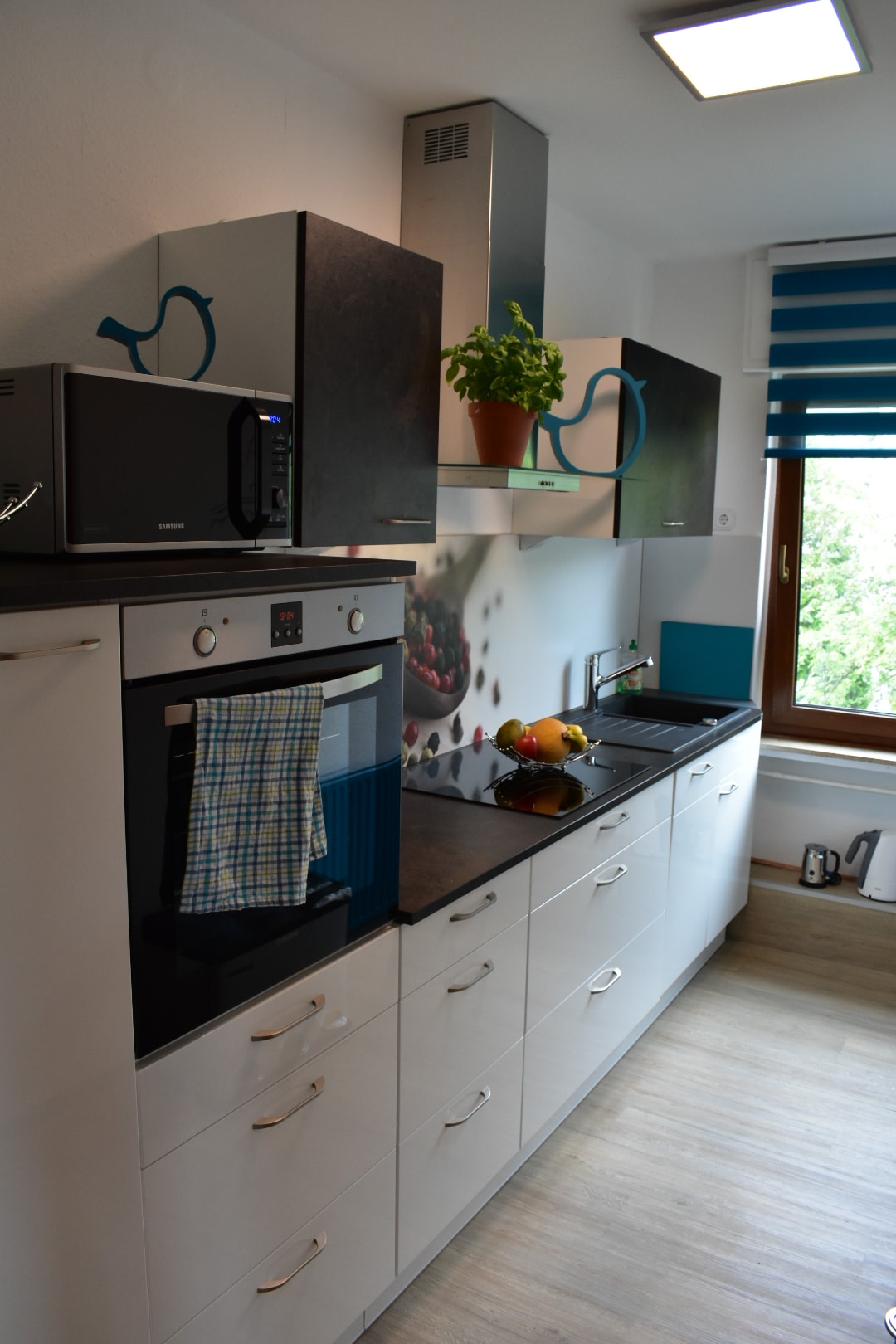 24h self check-in/out, cozy accommodation (2nd upper floor and attic, separate access) quiet, 48 sqm living/kitchen-bedroom with couch + double bed, fireplace, open large fully equipped kitchen, bathroom with shower + bathtub, dining table with 4 chairs, wardrobe, TV + Amazon Alexa, Attic via spiral staircase 2 beds or together 1 double bed Balcony + parking, 7 bikes & 2 city scooters 350 m from Lake Aasee, 230 m from bakery, 550 m from large supermarket. 3 km to city, 400 m to highway, 15 m + 200 m to bus stop, city + university: 12 min by bike / bus