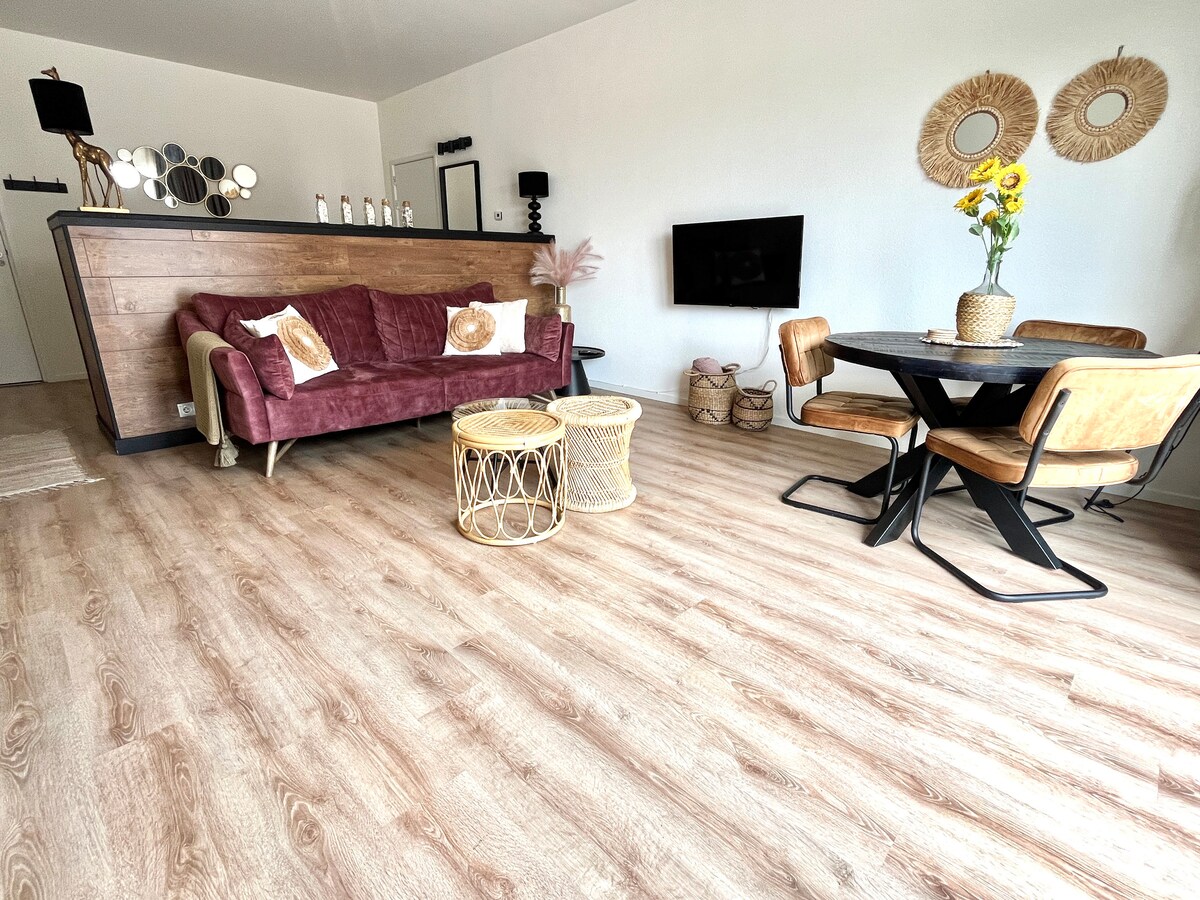 This trendy decorated cosy flat (45 m) is located next to the beautiful dunes of Zandvoort and is fully equipped. You will lack nothing. (Including private parking space) The beautiful beach with cosy beach clubs is within walking distance as is the lively centre. The train station is a 10-minute walk from the apartment with a direct connection to the beautiful cities of Haarlem (10 minutes) and Amsterdam (30 minutes).