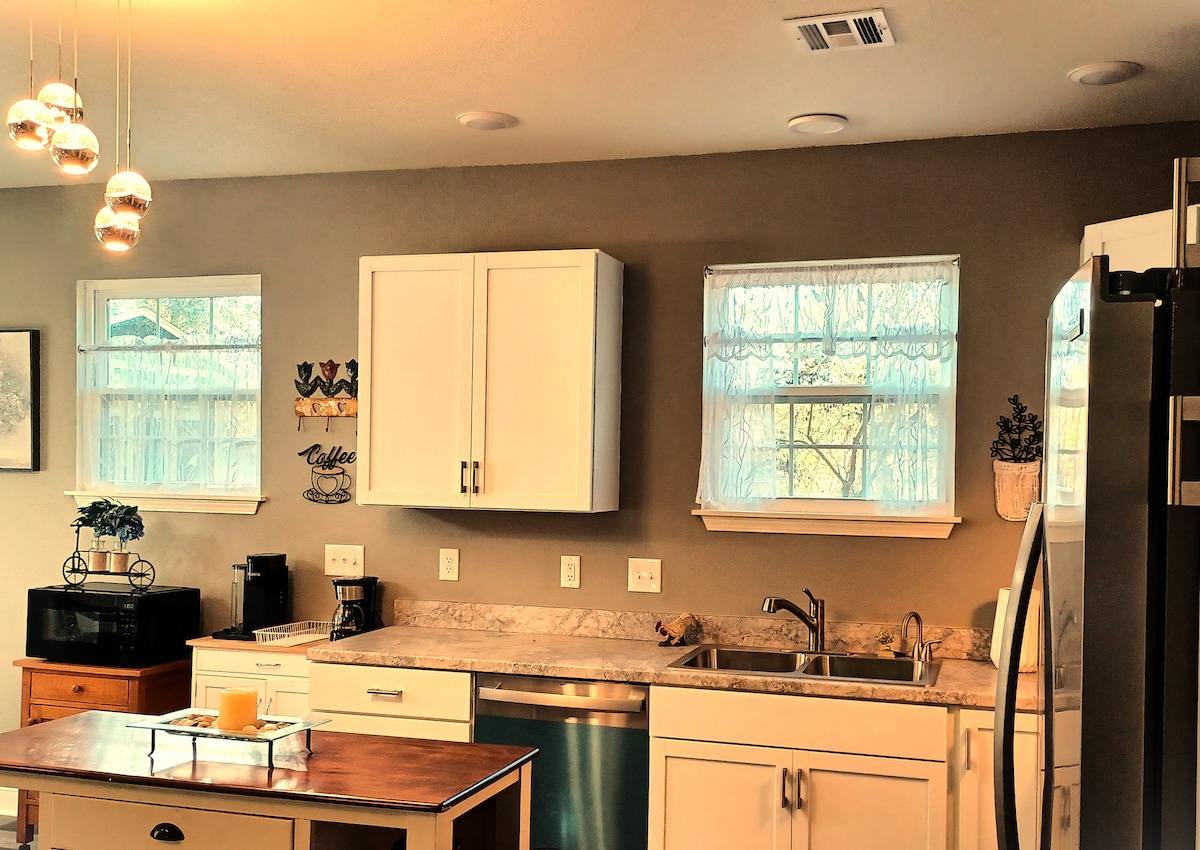 Upgrades: -as of July 2024 1. Water softener system -Jan 2024. 2. Laundry services available for a fee ($3 per load to wash, $3 per load to dry) 3. Tankless water heater added 4. New paint and renovation of interior images. A tiny quiet cove of delight with a private entrance and self check in/out process access. Cozy, quaint, and quiet. Awaken refreshed after sleeping comfortably on a Serta Perfect Sleeper mattress. No need to meet with host. Let yourself in.