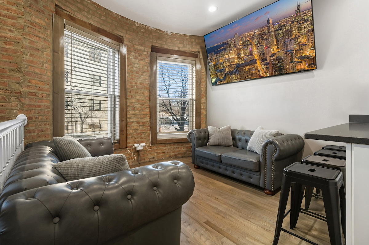 2-level condo near UChicago & Hyde Park with TWO 85” Smart TVs, PS5 gaming lounge, blazing-fast 1-Gig Wi-Fi, free street parking, and space for up to 10 guests. • Free street parking (no meters/permits) • Central air & heat • 6 Smart TVs: 2×85”, 2×75”, 2×55” • PS5 gaming lounge • Private condo — no shared spaces 3–4 min drive to UChicago campus, UChicago Medicine, Hyde Park dining, and the Obama Center site. Ideal for families, medical visits, and milestone birthdays. Premium streaming included!