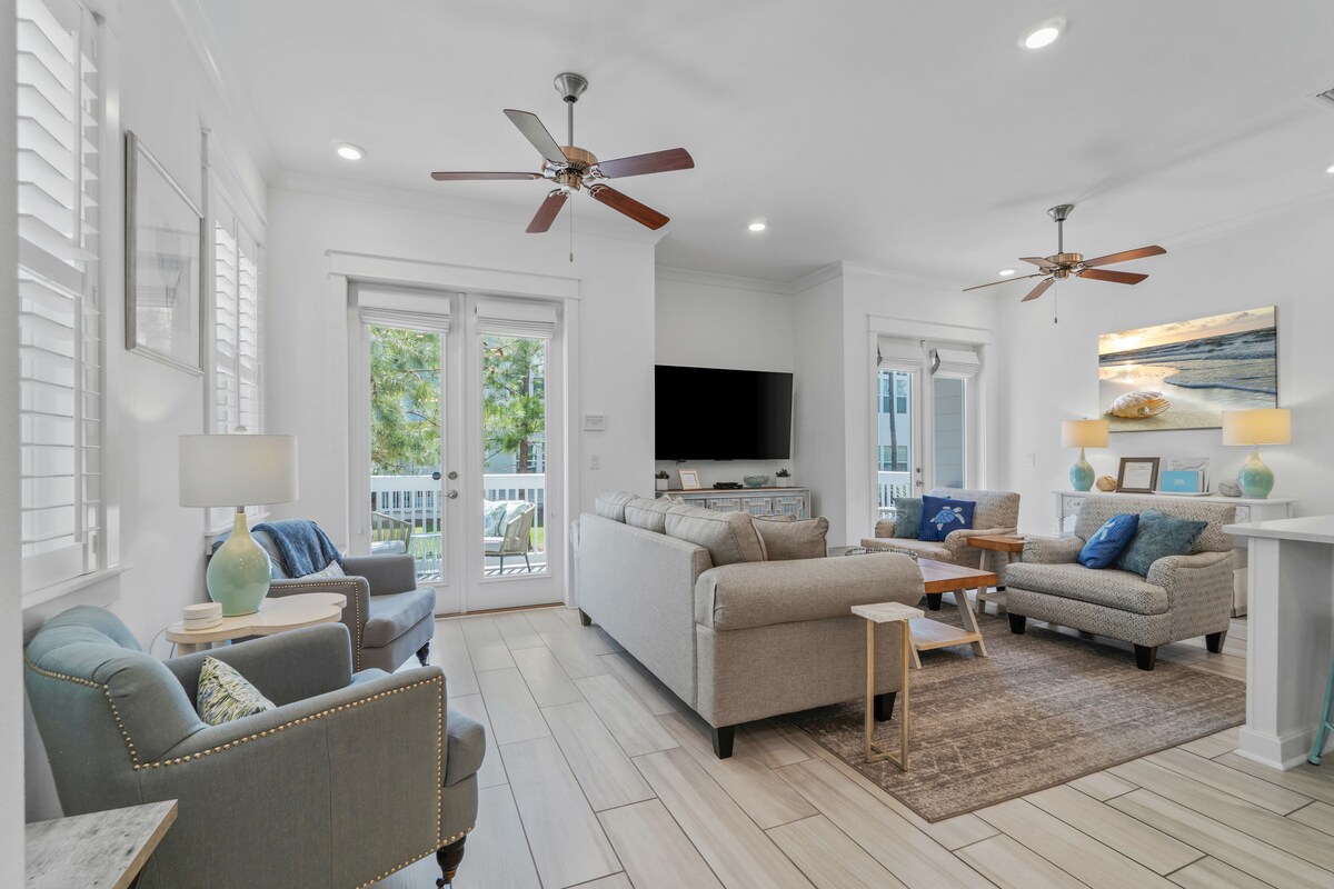 Southern Bliss has the sophistication of a modern beach house with a coastal vibe. This 3B/2.5B home is a short walk to the resort style pool and The Big Chill (aka The Hub) to enjoy restaurants, shops, shows, movie nights and concerts. Minutes to the beach using the golf cart or bikes provided is an added bonus! This stunning home will guarantee your vacation needs are met. Enjoy the fully equipped kitchen, new furniture/decor, comfortable beds, beach gear, and washer/dryer!
