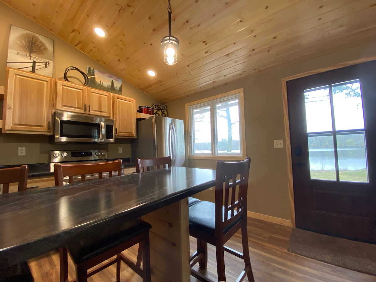 Escape to central Wisconsin in your own private cabin! One bedroom with a full bed and single bed. Second bedroom with a queen bed. Full kitchen. Full use of water toys and kayaks. Toddler toys to entertain the kids. You can also fit 3 to 4 campers on site with plenty of parking. Air conditioning. Central heat and electric fireplace. Refrigerator, microwave, electric stove, coffee pot. Private dock with public boat landing. There is not a beach. Wifi. Now open year round!