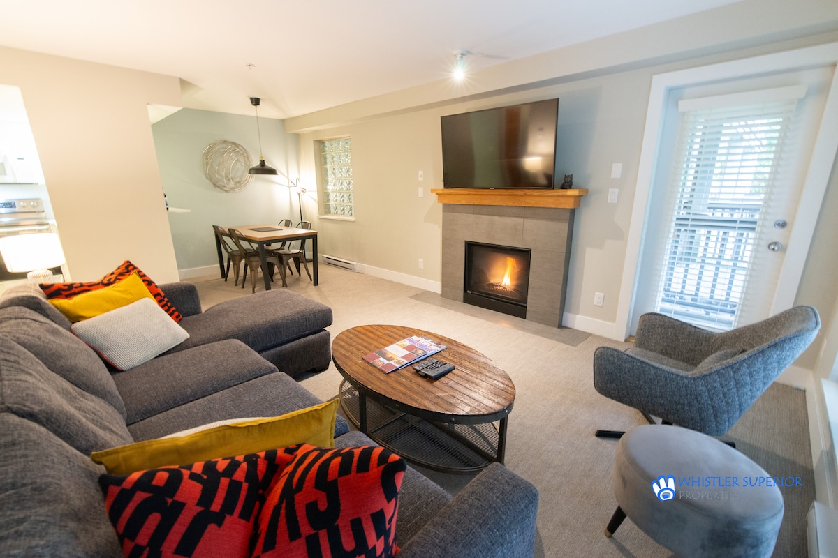 🛏️ Family-Friendly Comfort: Sleeps 5! 2 bedrooms - a king, queen, and single bed, plus 2 bathrooms. 🏊 Year-Round Pool & Hot Tubs: Enjoy the heated pool and three hot tubs, perfect for all seasons. 🥾Only 500m from the new Blackcomb gondola — the base is less than half a minute away. 🔥Cozy Amenities: A/C & Netflix 🚗 Easy Parking & Storage: Secure underground parking with ski/bike storage and rentals onsite. 🚵 Golf Course and Mountain Biking Nearby.
