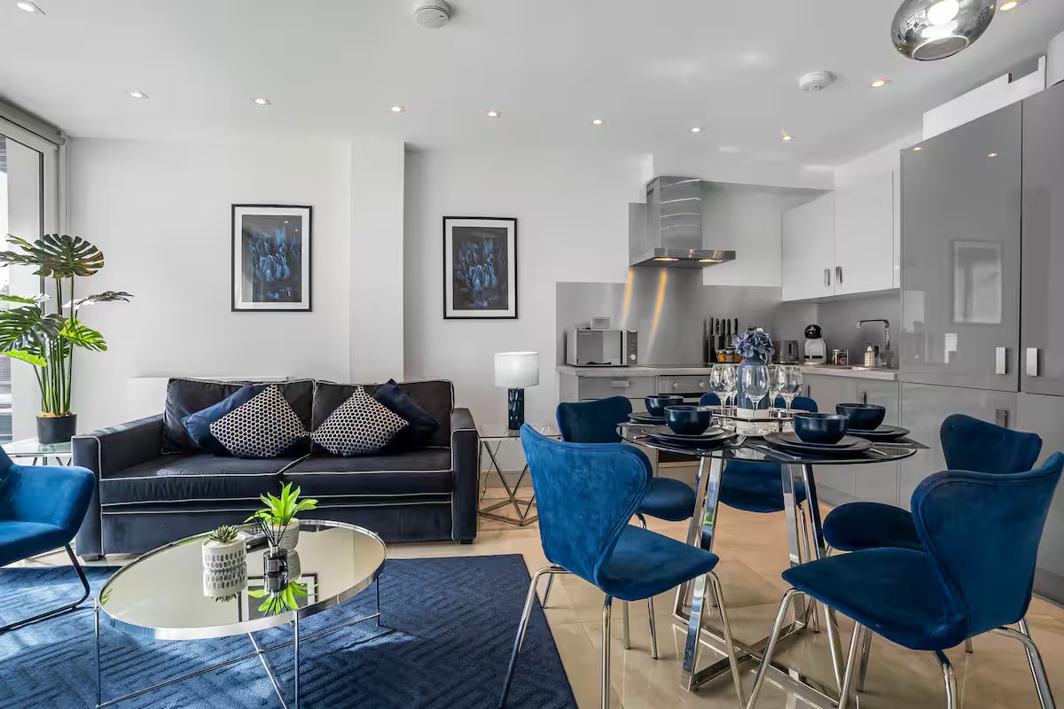Enjoy comfort, style, and convenience in this luxurious 1-bedroom flat near Wembley. Features a king-size bed, a 3-seater sofa bed, and sleeps up to 3 guests. Includes a modern kitchen and bathroom with essential appliances. Located in a new development just minutes from Wembley Stadium and Wembley Park Station. Less than 12 minutes to Central London. Ideal for events, business trips, or family getaways.