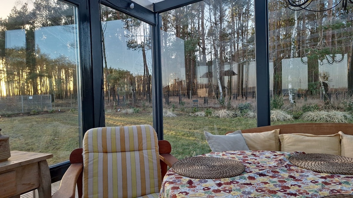 Discover a cozy cottage by the forest in a quiet village, surrounded by beautiful nature, take a walk through the forest to the lake, admire the views from the windows, breathe fresh air - we invite you :) - the cottage is open all year round - directly under the forest - exclusive cottage with a fenced plot of 1200 m2 - wood-burning sauna - wood-fired hot tub - extra fee - beautiful area for walks, view of meadows, fields, forest, charming Noteć river - pets are allowed - bed linen, towels - swing, sandpit