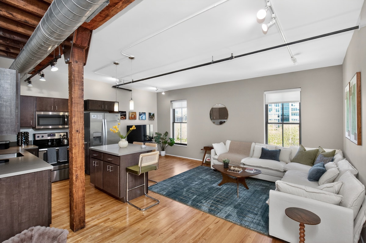 Welcome to Downtown Des Moines! The perfect centrally located 2 bedroom 2 bathroom Loft condo in the middle of it all! Walk to nightlife, shopping, restaurantes and entertainment. > Cozy and Convenient - the best location downtown! > 24/7 Fitness center > City view rooftop courtyard and dog park > Direct access to skywalk system > 1x King & 1x Queen Bed > Smart TV's in bedroom & living space > Dedicated work space > High speed Wifi > Fully Equipped Kitchen > In unit free Laundry > Pet Friendly!