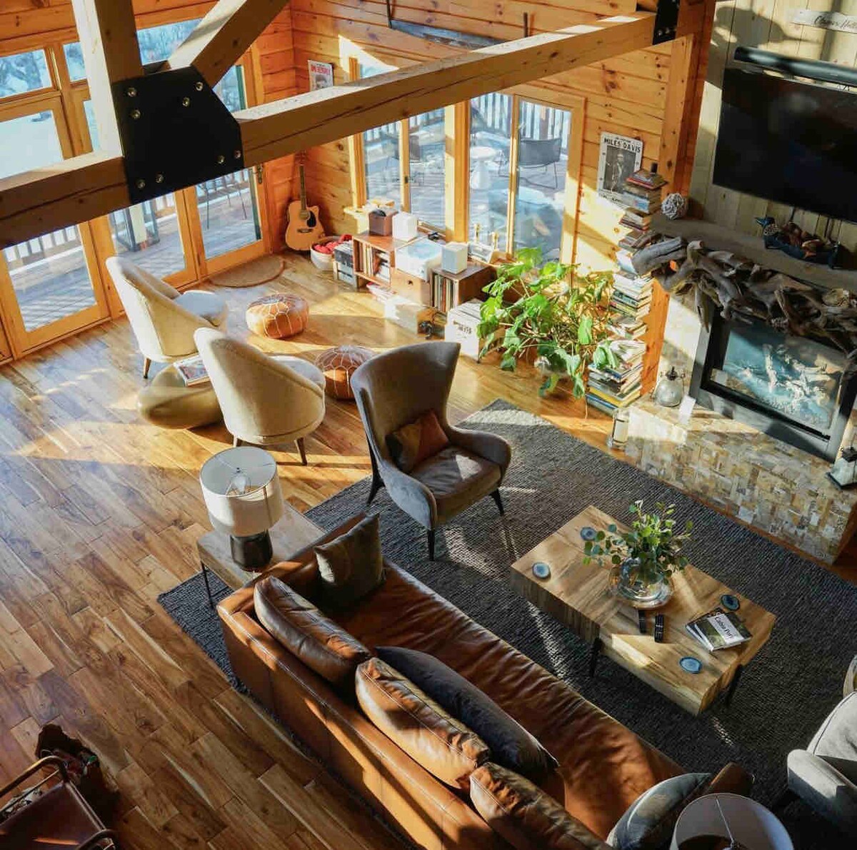 Our modern log home is set up with fine things like Turkish towels, local artisan soaps & the softest sheets. The tasteful decor has an mcm vibe w/industrial touches. Wander outdoors, swim, follow a creek, slip into the forest, hike back, cook dinner in a state of the art kitchen w/ a pantry full of fun gadgets. Relax by the fireplace, sit outside & watch the stars, light a fire. We provide blankets & wood. A welcome basket & a fully stocked coffee bar for the early mornings are waiting for you.