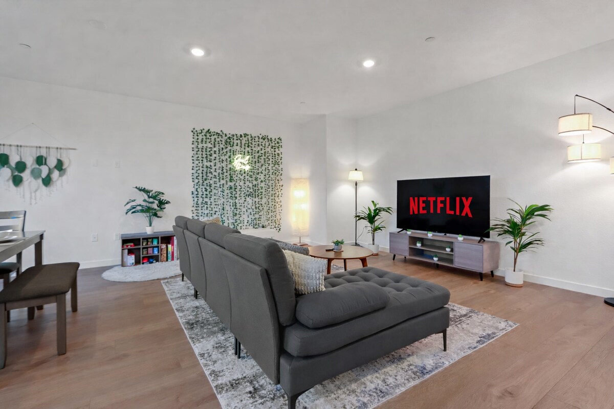 This spacious, stylish 2 bed/2 bath features unique amenities! 20 min from Downtown & Roseville, guests can be close to everything that our city has to offer! Great amenities for business travelers. High speed internet, provided desk space & printer for guests working remotely! Smart TV's in each room for streaming. Comfortable beds. Beautiful outside deck with sitting areas. BBQ available upon request. Located within walking distance to an Aquatic Center & huge community park.