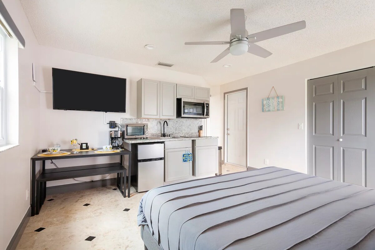 This private studio is located in the West Tampa area next to Raymond James Buccaneer Stadium. Very close to downtown, Midtown, Tampa airport, International plaza , the interstate, and to popular restaurants such as Flemings, Ocean Prime and Armature works. It comfortably accommodates up to 2 people. This shabby chic hideaway is ideal for touristic or work/study related trips. Every detail has been well-thought and curated to deliver the best experience for our guests.