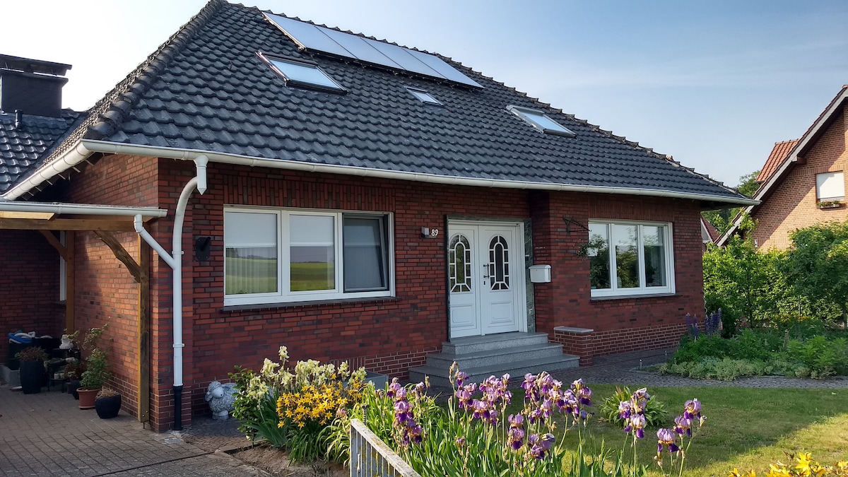 Our vacation home is nestled in the park landscape of the Münsterland in the immediate vicinity of the Dortmund-Ems Canal and at the foot of the Teutoburg Forest. Beautifully integrated into a half-timbered ensemble, our Hüsken offers direct access to its own garden with sitting area, fireplace, barbecue, parking space and covered accommodation for bicycles. A wallbox with 11 kW is available on the premises at cost.