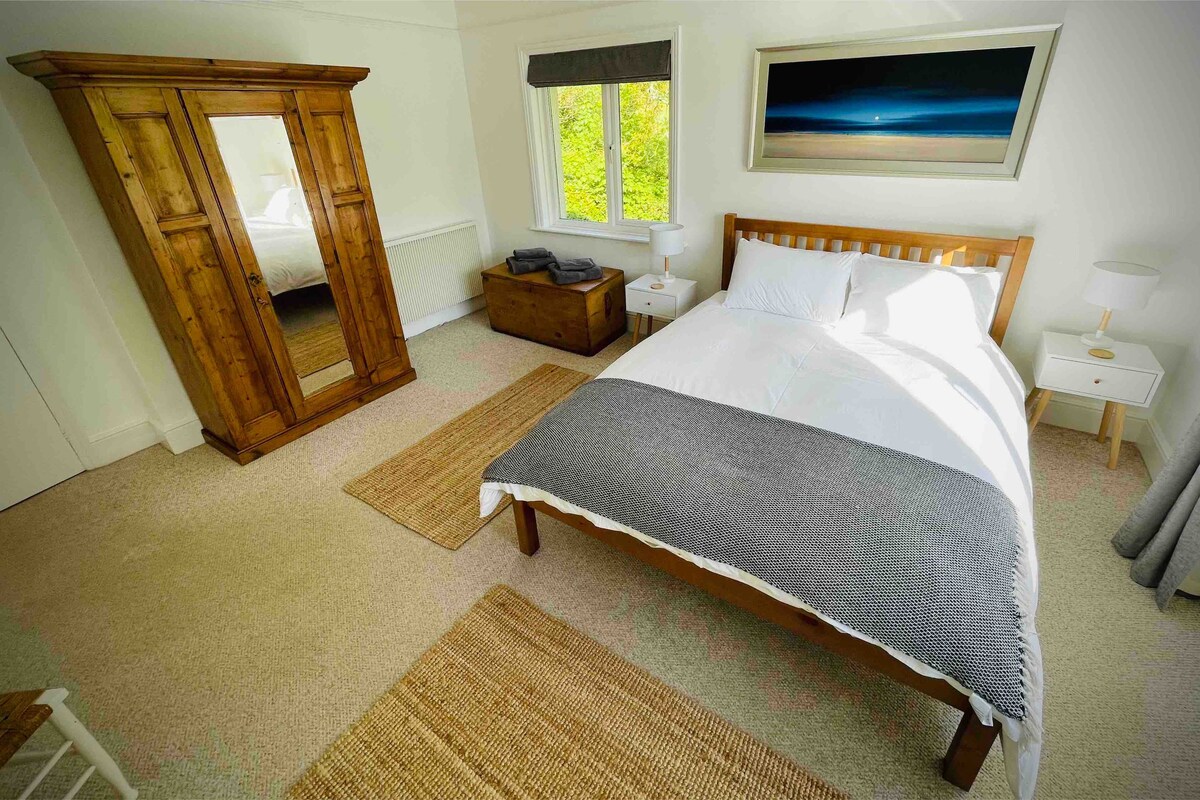 Discover the charm of 'Persuasion' where pages of Jane Austen’s classic novel came to life. Enjoy an unparalleled sea view experience, 1800s period character & airy comfort. Relax in a chic living area with high vaulted ceiling, exposed wooden beams & modern kitchen. Behind wide opening French doors find a turret-style bedroom offering sea views & sounds. Bathroom with bath & shower, Harry Potter-esque entrance hall & stairs. A central stay yet tranquil. Ideal for romantics, solo adventurers.