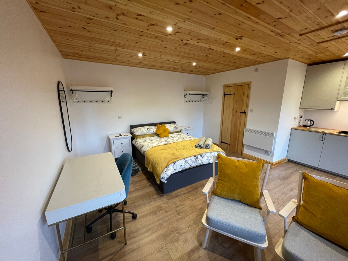 This comfortable studio with amazing views, lots of outdoor space, walks from the doorstep and pubs with good food nearby is perfect for couples looking to re-charge their batteries in a rural location. It has a well-equipped kitchen, including dishwasher, White Company linen, underfloor heating with independent controls, it's own combi-bolier for hot water, tv and wi-fi. It is on the edge of the Peak District with many local attractions, such as Chatsworth and Hardwick Hall.
