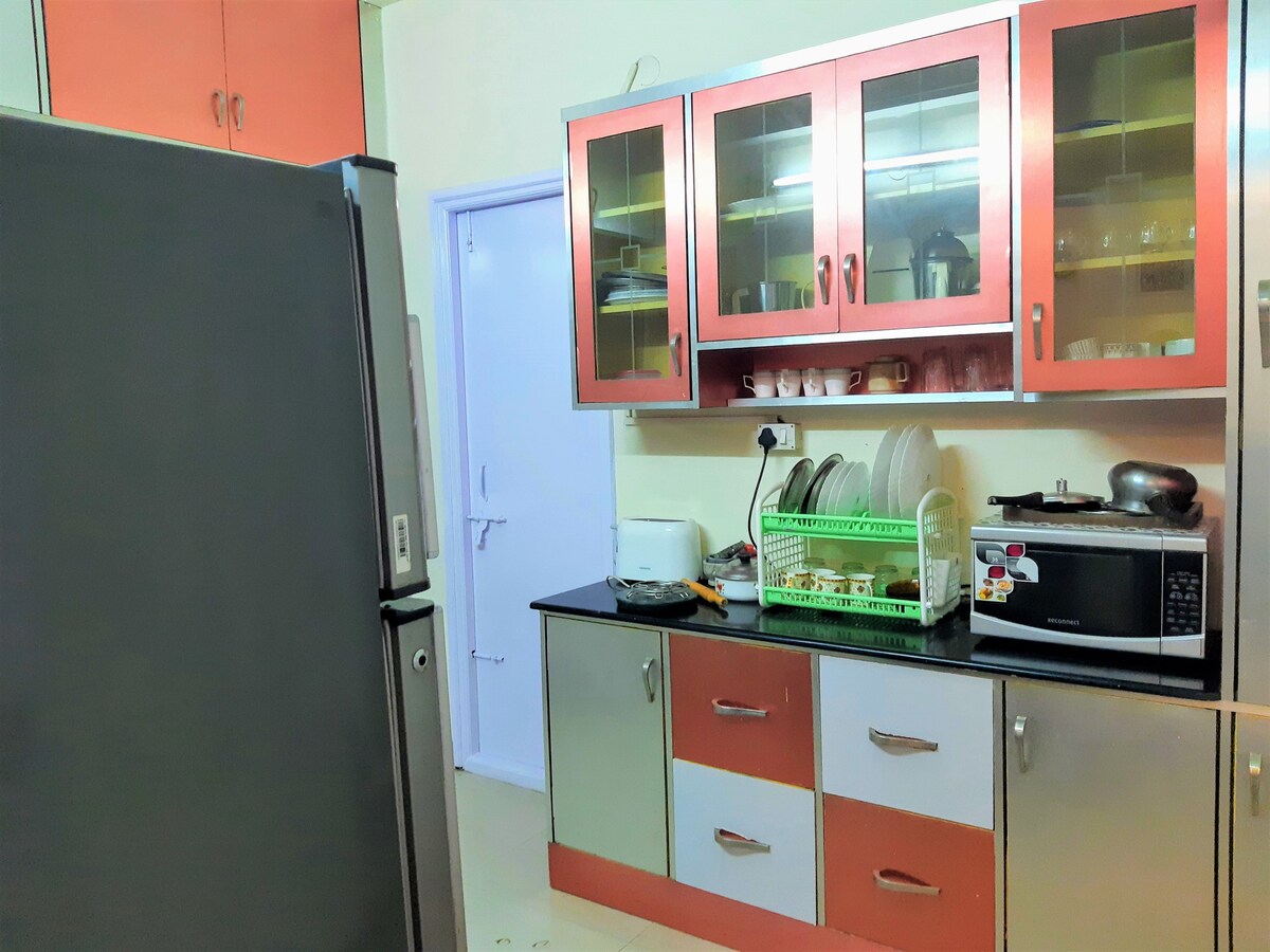 You with your family and friends will be close to everything when you stay at this centrally-located place like Mall, INOX Cinema, SuperMarket, Veg, Non-Veg Restaurant inside Quality Saloon, Gym, Walking, Swimming Pool in terrace inside the campus, private car parking. Access to cabs, and trains,40 minutes to Bangalore airport. Close to ITPL, Sigma Tech Park many other tech parks in Whitefield are within reach.