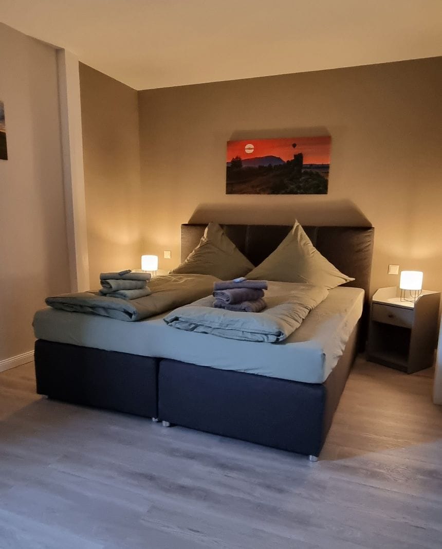 Dear guests, this accommodation is a complete apartment of 47 m² with kitchen incl. stove, microwave and dishwasher, bathroom with tub, bedroom with double bed 180 cm x 200 cm and living room with sofa bed for 2 people (140 x 190 cm). Wi-Fi is available as well as a flat-screen TV in the bedroom and living room. Telekom LTE (D1) with 50 mbit is available.