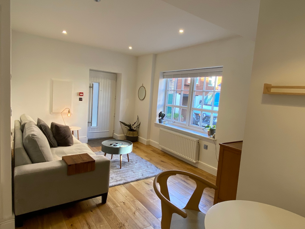 A beautiful bright cosy studio apartment on one of the quietest streets in the centre of historic Winchester❤️. The breathtaking cathedral and other must-see sights are all within a flat 10 minute walk. Ideal for short stays or a weekend get-away. Just five minutes walk from train station/city centre, and 10 mins walk from the bus station. * Super-comfy double bed ✅ * Fast WiFi ✅ * Comfortable big chair and table for laptop working ✅ * Wide range of caf/decaf teas and coffees ✅