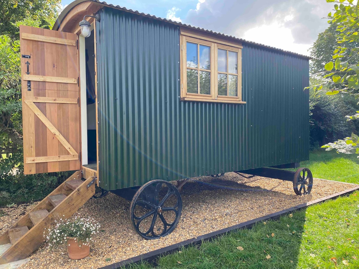 Dog friendly traditional Shepherd's Hut in private secluded garden within the grounds of our cottage. Beautiful valley views - 4 miles from Stonehenge/Salisbury. Living area/kitchenette/double bed, en suite shower room, private secure garden with gas BBQ. Some breakfast ingredients are included. Exclusive use of large hot tub/summerhouse next to hut.
