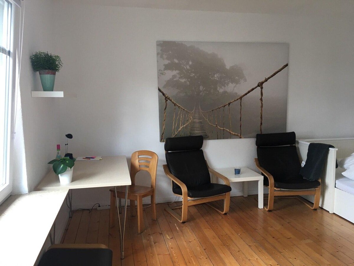 My apartment in the Geteviertel is 125 sqm over 2 floors on the raised ground floor and basement of a typical old Bremen house. The guest bedroom (1.60 m bed) is located in the quiet basement to the garden with a small terrace. There is also a shower room here. In the upper area are a living room with TV, kitchen and dining room (also with TV) with an upper terrace to the garden with old trees. The guest toilet can be used. Bakery, bus and train station (8 min. to the main station) are 300 m away.