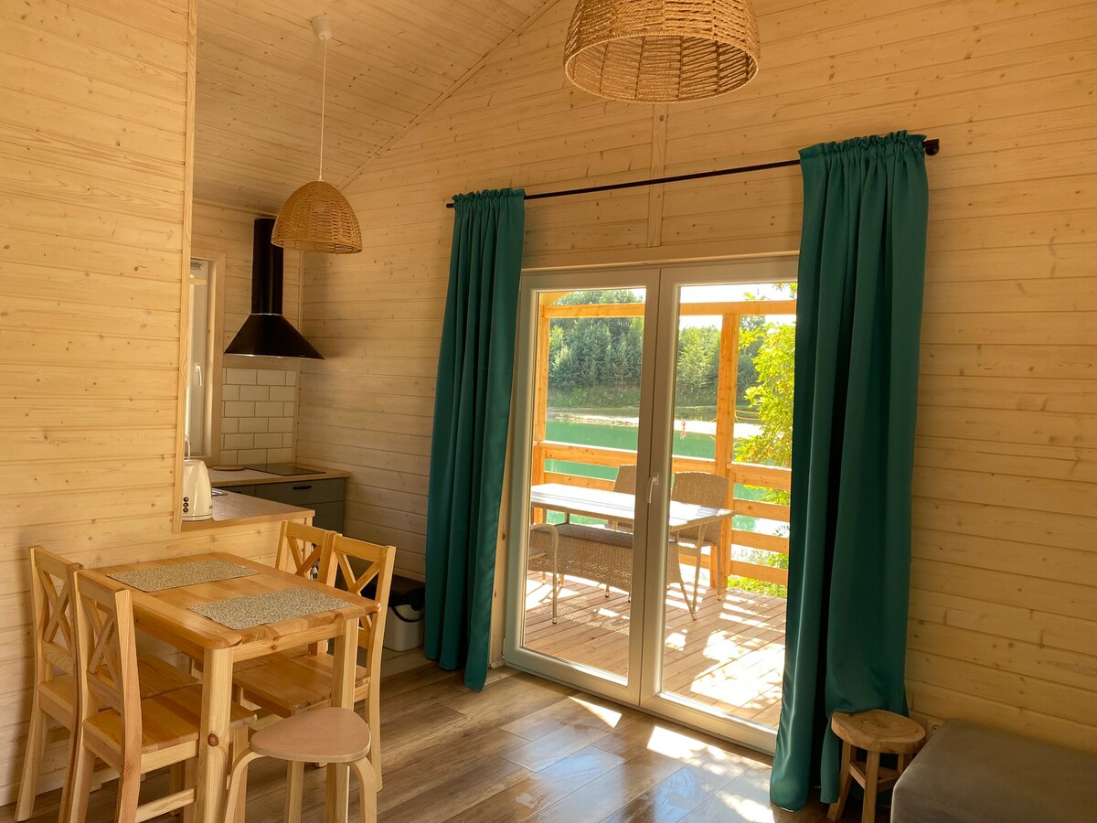 The facility to which we invite you is a newly opened, modern, 2-room with a living room and kitchen, fully equipped, comfortable house, located on a separate, large, beautifully organized plot. It is an unusual, charming place, surrounded by greenery on all sides. The 800 sq meters plot is 180 meters away from the shore of the very clean (1st class of cleanliness) Lake Łęsk. Walking along the lake shore (5 minutes) you will see a communal swimming area with a large pier. The view from the cottage is directly onto the forest.