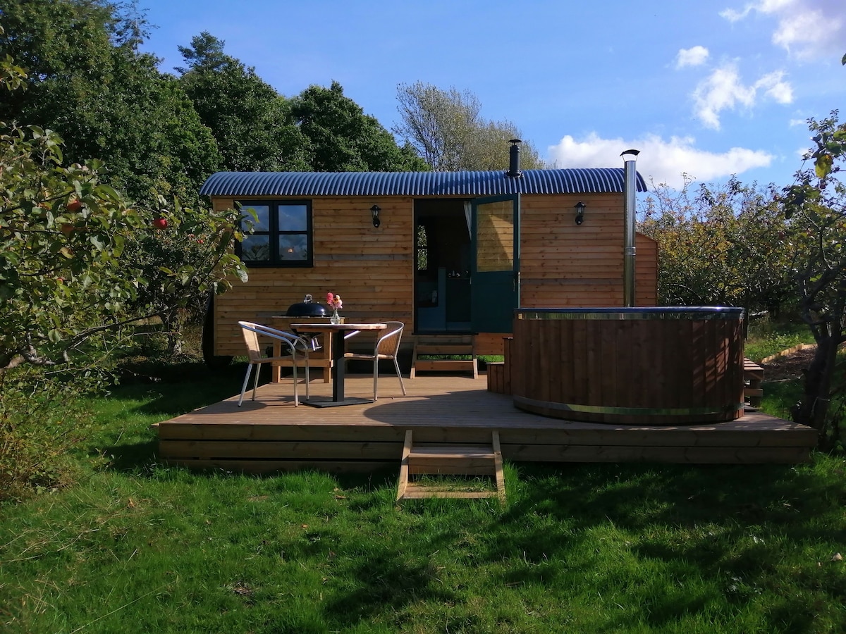 Enjoy the peaceful setting of this romantic spot in nature. Located in a private garden on our family farm on the Somerset levels. The carriage has been hand built and reclaimed from an old Devon railway carriage into a luxury self contained space - perfect for romantic breaks in nature. Wi-Fi, cedar clad electric Hot tub, log fire & star gazing. We also have our own little shop selling soft and alcoholic drinks, home made candles, sloe gin and playing cards
