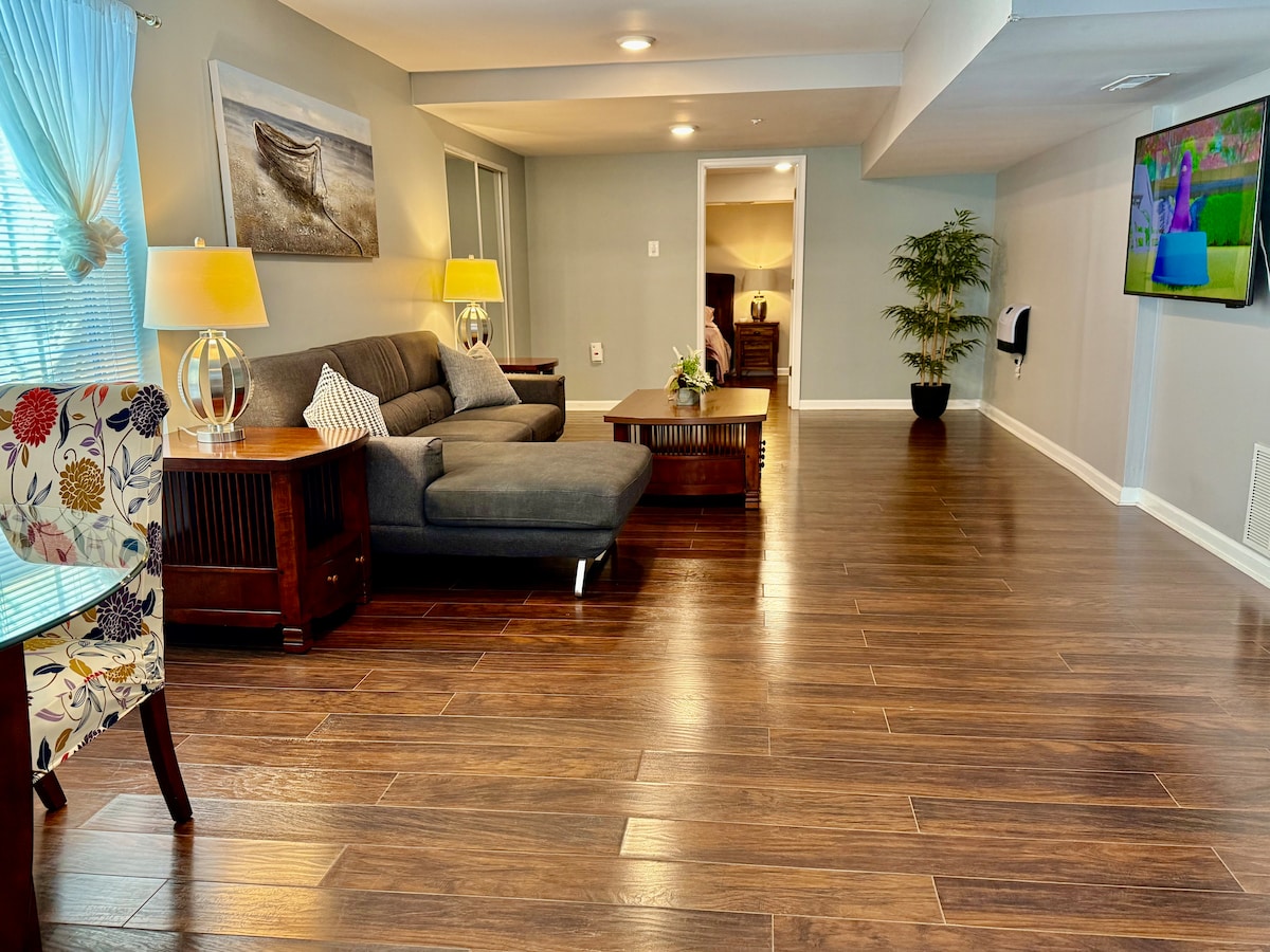 Enjoy a spacious private basement suite in Upper Marlboro separate entrance/ exit with a huge lounge/family room, 1 cozy bedroom, and modern bath. Relax with Two smart TVs 55 in the bedroom and 65 in living room high-speed WiFi with working stations with 31” Monitor , and comfy seating, or unwind after exploring DC, National Harbor, and FedEx Field minutes away. Free parking and private entry make this the perfect stay for couples, solo travelers, or business guests. Clean, quiet, and welcoming