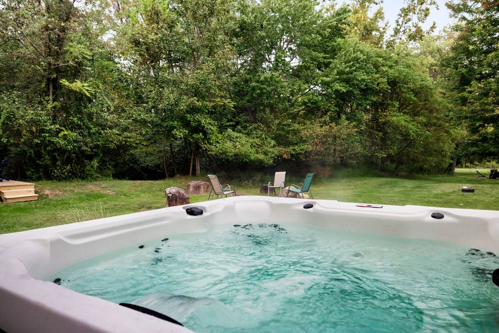 Our cabin, located in the foothills of the Appalachian Mountains is uniquely positioned overlooking a large open field where hawks hunt and bears leisurely stroll. Our neighbors have horses that peer over the fence (nosy) pet them but don’t feed them, please. Our cabin was built in 1865 by a Confederate soldier returning from the Civil War. Eleven children were born and raised in John Pope Cabin. Our cabin is rustic. An inviting front porch with swing is waiting for you @walnuthillcabin